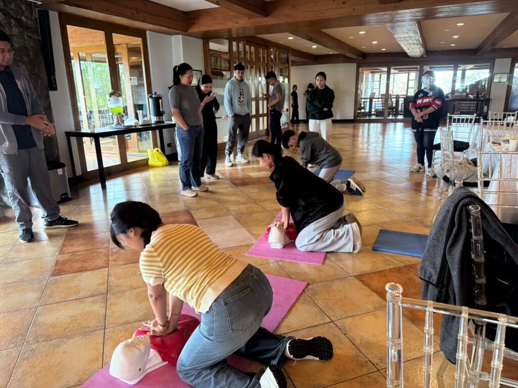 In line with the S.A.L.U.N.-A.T. Initiative, the University of Baguio (UB) School of Nursing proudly spearheaded a dynamic two-day training program on February 24–25, 2026, designed to equip the newest employees of John Hay Hotels, Baguio City, with essential lifesaving skills. The first batch of participants underwent intensive Basic Life Support (BLS) and Standard First Aid Training (SFAT) sessions, facilitated by a dedicated faculty member Ms. Fawn Maday-a, alongside four accomplished UB alumni Mr. Vince Andaya, Mr. Eric Villamor, Mr. Jehoshua Sarmiento and Mr. Miguel Valentin and one alumnus from Saint Louis University’s School of Nursing.
